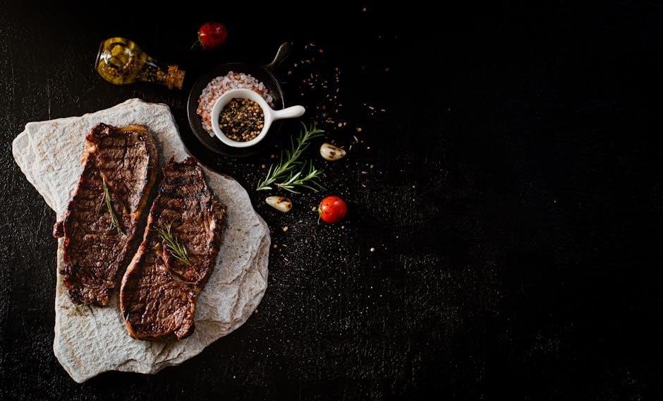 Ruth’s Chris Steak House is renowned for its signature cooking methods‚ which emphasize precision and flavor. Steaks are seared to perfection in a high-temperature broiler set at 1‚800 degrees Fahrenheit‚ ensuring a crispy crust while locking in juices. Each cut is cooked to the guest’s exact preference‚ whether rare‚ medium‚ or well-done. The chef’s expertise in timing and temperature guarantees a flawless execution. This meticulous process‚ combined with the restaurant’s commitment to quality‚ delivers a steak that is both tender and full of rich‚ savory flavor‚ making it a standout feature of the menu.